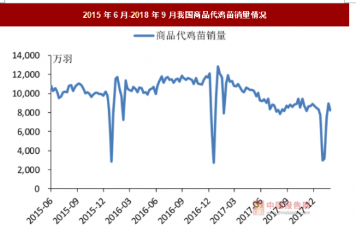 通过对于近两年的商品代鸡苗的销售数据监测,从全国估测水平来看,从 2016 年四季度开始持续下行,其间仅有 2017年三季度小幅反弹。这是由于 2016 年景气带来行业积极补栏,导致 2017 年再度进入低迷。从全国父母代存栏的估计数据来看,目前绝对值已经进入历史低位。