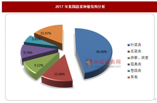 从种植的蔬菜类型来看,我国的蔬菜种植主要以叶菜类为主,占到约46.9%比例,其次为瓜菜类、块根、块茎类,占比分别为12.6%、9.12%。从蔬菜结构来看,这与我国国民的生活习惯是相适应的。