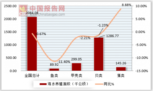 2017年中国海水养殖面积与增速统计