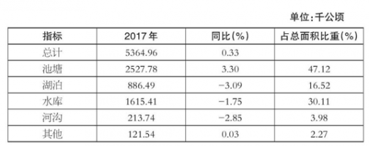 调整后,2016年全国水产养殖面积为7445.54千公顷,其中海水养殖面积2098.10千公顷,淡水养殖面积5347.44千公顷。2016年全国水产品总产量相应调整为6379.48万吨,其中海水养殖产量1915.31万吨,淡水养殖产量2877.89万吨(含稻田养殖),海洋捕捞产量1187.20万吨(不含远洋渔业),远洋渔业产量198.75万吨,淡水捕捞产量200.33万吨。根据调整后的2016年渔业统计主要数据,参考各地报送的2017年渔业统计年报,确定调整后的2017年全国水产养殖面积、水产品产量等数据。