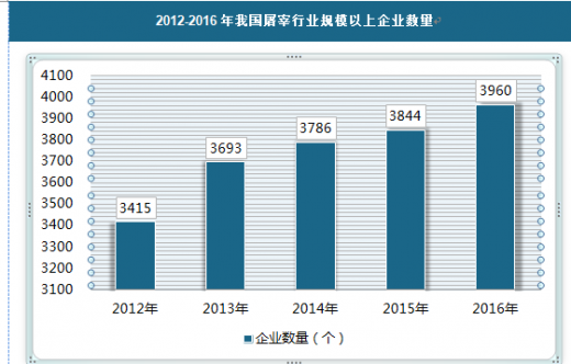 截至2016年我国屠宰行业规模以上企业数量达到3960家。