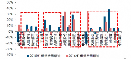 从具体企业来看,百货行业大部分企业租金费用、折旧摊销费用增速放缓,人工费用增速加快;超市行业大部分企业人工费用、租金费用、折旧摊销费增速均有所放缓。