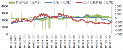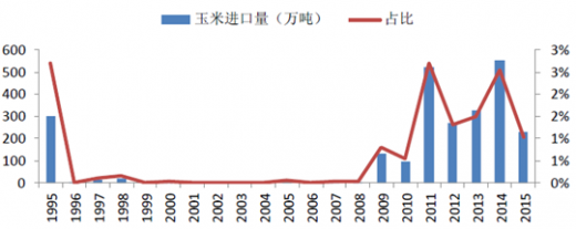 1、2004年以来,每年进口玉米配额的发放量基本稳定在720万吨,配额的60%分配给国有企业。但是国内饲料生产企业有上万家,99%为民营企业,其玉米消费量占总消费量的绝大部分,但是这些配额申请不易,私企很难拿到国外便宜的玉米,且申请的数量仅能满足企业的生产,无法流入到市场中,。2016年的进口政策已经出台,2016年玉米进口配额为720万吨,配额数量占我国玉米消费量不足5%,国外的低价玉米很难冲击到国内玉米市场。我们认为,考虑到近年来国家收储大量玉米,2016年放开玉米配额政策亦不可能,因此未来玉米价格波动主要看国内供需情况及政策情况。