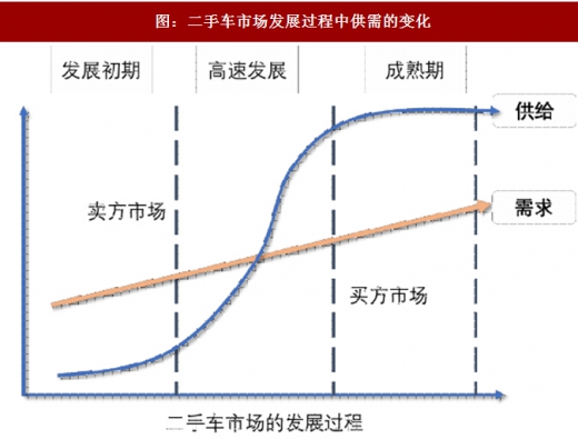 成熟期,车源供给充足,是买方市场,得客户者得天下。二手车发展的成熟期,二手车的供给充足,获车成本降低。在零售环节,具有良好口碑的品牌经销商将成为长跑冠军。