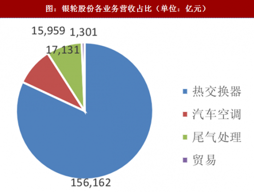 银轮股份从商用车热交换器起家,公司逐渐转向研发乘用车热交换器。公司 2016 年商用车、乘用车和工程机械的营收占比分别约为 60%、30%和 10%,2017 年上半年营收规模增长 40%,商用车占比已从 60%降至不到 50%,乘用车业务是主要增长点,占比要从当前的 30%提高到近 50%,其余为工程机械。