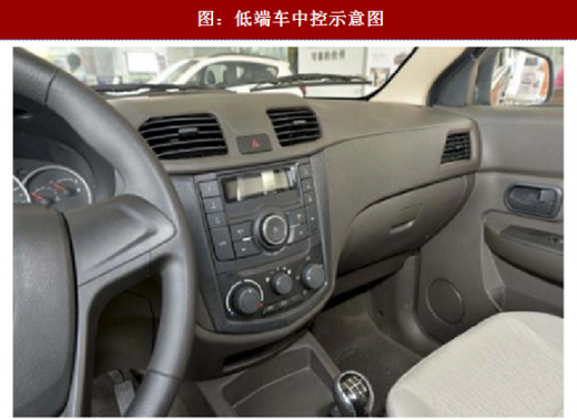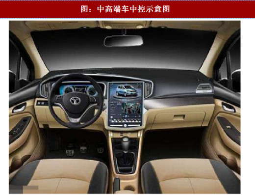 从目前高低端车差异上看,汽车电子最迫切的还是中控系统的智能化。车载娱乐及多媒体的智能化是更新升级的重点,并且车载导航及影音系统已经达到了下沉的临界点,影音导航系统单套价格已经下降到 1000 左右,车企超配的动力比较充足。按 2016 年 2800 万辆汽车销量计算,其中自主乘用车约为 43%的市场占有率,将近 1000 多万辆为自主车,且大部分为自主低端车,10 万-15 万以下的水平,大部分没有配备高端车载影音导航系统。按单车配套价格 1000 元计算,潜在市场空间 100 亿以上的需求。