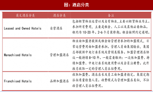 自营又分为:自持物业(owned)与租赁经营(leased);两者的主要区别在于用于经营的酒店物业是否属于酒店集团。目前绝大多数酒店集团的经营物业来自于租赁。