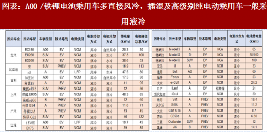 1)纯电动车型越高端,基于续航及动力要求,车辆带电量及驱动电机功率越大,自然风冷方式较难满足冷却要求,液冷或水冷成为热管理方式主流。