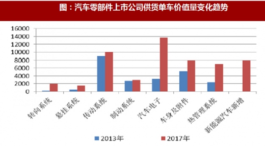 根据现有的零部件上市公司公告中的公开信息整理,更多公司的业绩增长来自技术升级,产品线延伸,散件到小总成带来的单车价值量提升,汽车零部件公司的利润增速与新车销售相关性持续减弱。