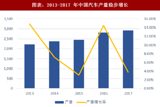 图表:2013-2017 年中国汽车产量稳步增长