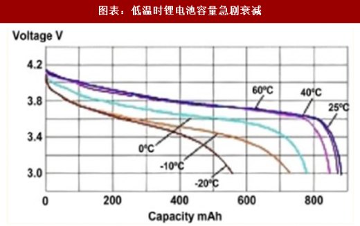 温度较低时的可用容量迅速发生衰减,充放电性能下降,如图6所示。