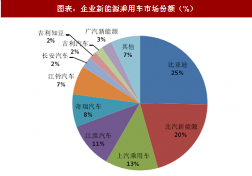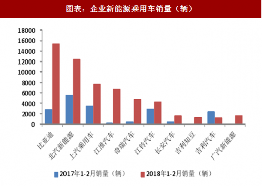 1-2 月新能源乘用车销量较高的企业为比亚迪、北汽新能源、上汽乘用车等,累计销量分别为 1.5 万辆、1.2 万辆、0.8 万辆,同比增长 465%、123%、127%,市场份额分别为 25%、20%、13%。去年同期销量较低的江淮、奇瑞等也实现了销量的快速增长。
