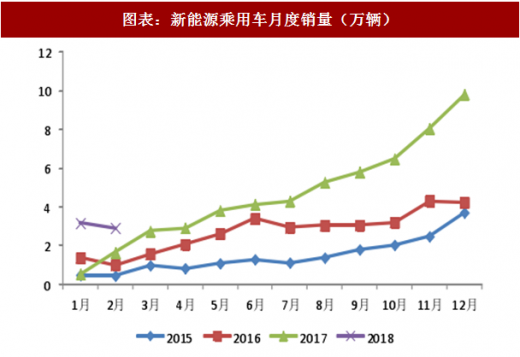 年初新能源汽车抢装行情带动销量同比大增。1-2 月新能源汽车累计销量达 7.3 万辆,累计同比增长 213%;1-2 月新能源乘用车累计销量达 6.1 万辆,累计同比增长 179%,其中纯电动乘用车 3.9 万辆,增长 130%,插电式混合动力乘用车 2.3 万辆,增长 337%。