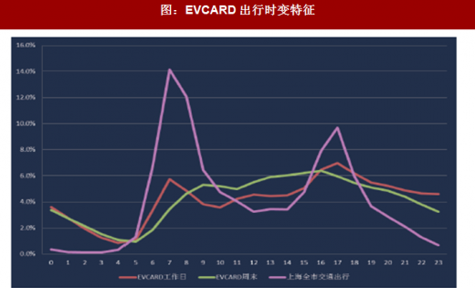 目前evcard采取基于用车时长的收费机制,一定程度上更鼓励非高峰时段用车,从而降低用车成本。因此,分时租赁车辆对道路交通运行具有一定的“削峰填谷”效益。