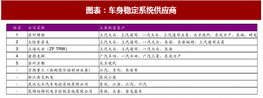 外资巨头垄断,国内自主逐渐崭露头角。虽然车身稳定系统行业被外资巨头垄断,车身稳定系统高度集成式发展趋势,从技术趋势来看,其成本会逐渐降低,车身稳定系统装备向中低端市场渗透,国内具有一定的优势竞争力。
