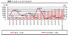 在2015年7月行业销量同比增速触底后,汽车行业景气度开始回升。2016 年1-11 月汽车行业累计销量 2494.8 万辆,同比增长 14.1%,行业全年增速略高于我们 2016 年度策略预测的 12.0%;其中乘用车销量 2167.8 万辆,同比增长15.6%;商用车销量 327.0 万辆,同比增长 5.3%。预计 2016 年全年销售汽车 2,795 万辆,同比增长 13.6%;其中乘用车 2,433 万辆,同比增长约 15.0%;商用车 362 万辆,同比增长约 5.0%。乘用车销量呈现高速增长,商用车销量实现温和复苏。