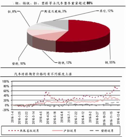 考虑到 2017 年汽车销量增速或将放缓,整车厂竞争激烈,成本压力将传导至上游零部件企业。同时原材料价格持续上涨,因此 2017 年零部件行业收入和利润将面临较大压力,部分企业或受益于细分行业高速增长,如新能源汽车、节能减排、消费升级、国产替代等。