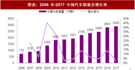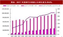 汽车产业规模的不断壮大,为汽车电子带来广泛的应用空间。近年来我 国的汽车市场发展迅速,汽车年销量在 2006 年时不足 800 万辆,2017 年 增长至 2,888 万辆,年复合增长率达到 13.49%。我国汽车销量全球占比从 2005 年的 8.73%提升至 2017 年的 29.9%,目前已成为全球最大的汽车销售市场。
