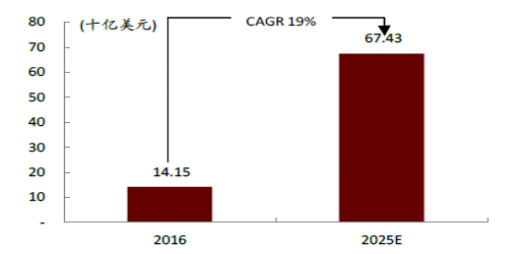 相对应的,全球adas市场也在不断增加,根据预测分析,2025年全球adas市场规模将达674.3亿美元,根据估算2016-2025年,年复合增长率为19%。