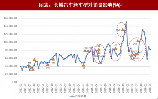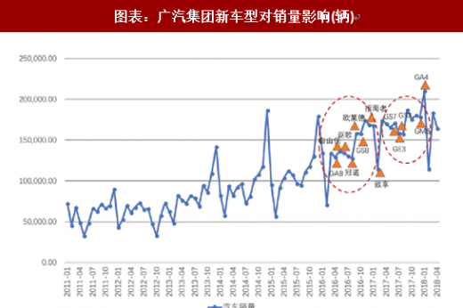 近两年销量增长较快的上汽乘用车、广汽集团和长城汽车,可以看出各公司销量大幅增长均是由于推出了多款受到市场青睐的新车型。