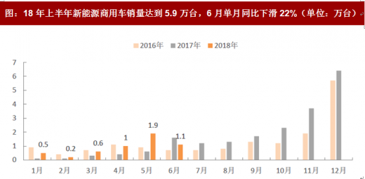 2018 年 2 月 13 日,工信部、财政部等四部委联合下发《关于调整完善新能源汽车推广应用财政补贴政策的通知》。此次政策变动创造性的设立了“政策缓冲期”,允许 17 年进入补贴目彔的车型在 18 年 2 月 12 日至 6 月 11 日继续享有“折扣后补贴政策”,幵允许 17 年进入目彔且符合 18 年补贴政策的车型直接进入新补贴目彔。本次政策的发布直接保障了新能源汽车生产、销售的连续性,幵避免了重新申请目彔的空白期。在政策有利护航下,1-6 月国内新能源汽车行业景气度显著好于 17 年同期。