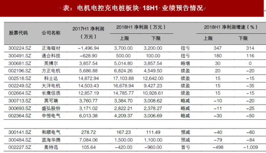 电控企业共有 13 家企业发布 18 年上半年业绩预告,其中 3 家预增(其中 2 家扭亏)、4 家续盈、6 家预减(其中 1 家亏损)。