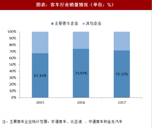 补贴退坡,新能源客车盈利能力下降,行业加速去伪存真。随着补贴的下降,客车企业盈利能力受到不同程度的影响,但行业阵痛的同时销量集中度也在提高。根据统计:2015 年主要客车企业新能源客车销量合计占全行业 67.16%,2017 年上升至 71.37%。