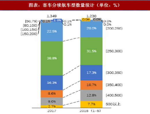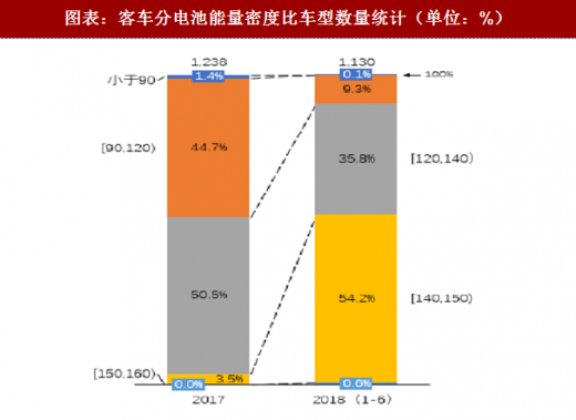 车企积极调整车型应对补贴考核的变化,包括单车带电量和电池能量密度比等。对比新能源车型推荐目录:2018 年前 6 批累计车型续航较 2017 年呈现明显上移,其中续航在 300km 以上的车型占比从 36.55%上升至 48.46%,电池能量密度比在 120 wh/kg 以上的车型占比从 53.32%上升至 90.61%。