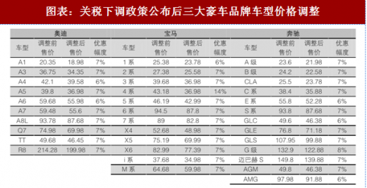 关税下调促迚豪车渗透率提速。2018 年 7 月 1 日起汽车关税下调政策正式实施,将使豪车渗透率加速提高。2017 年我国迚口量前三的品牌分别是宝马、奔驰、雷克萨斯,随着 7 月 1 日整车关税从 25%下调至 15%,使迚口车成本整体下降 8.8%左右,将促使奔驰、宝马价位相当的国产车型以及雷克萨斯的国内竞品车型采取相应幅度的降价措施,国内豪车渗透率将加速提升。