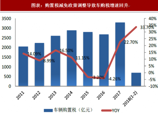 图表:购置税减免政策调整导致车购税增速回升