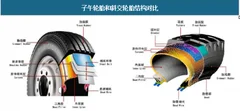 轮胎结构大体可分为两种,即子午线结构和斜交结构。子午线结构与斜交结构的根本区别在于胎体。胎体是轮胎的基础,它是由帘线组成的层状结构。胎体层上部有帘线为周向排列的带束层,这种结构使帘线强度能够得到充分利用,故子午胎的帘布层数比斜交轮胎少40%-50%。