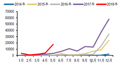 第二,国补新规在6月正式实施,高能量密度高续航里程的a/a0级车开始逐渐放量,而a00车也将切换至新标车型继续发展当在过渡期消化完旧产品库存后,因此2018年6月新能源车总体产销量数据下降幅度较小,环比持续上升,预计全年新能源车产销量仍然维持110万辆。