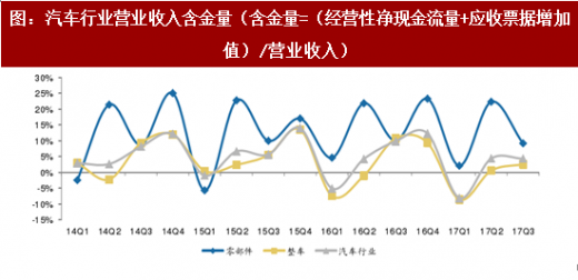 由于汽车行业上市公司管理水平相对较高,现在企业的应收票据基本为银行汇票,变现能力较强,且目前银行承兑汇票被用作基本的金沙下载送彩金的支付方式,我们以经营性净现金流量与应收票据增加值之和衡量经营性现金流情况,并测算汽车行业营业收入含金量情况,会比仅用经营性净现金流更加准确反映企业获取现金的能力。