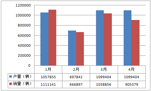 2016年1-4月中国汽车产量6590492辆,同比增长6.18%。其中乘用车产量为5702283辆,占比86.52%;商用车产量为888209辆,占比13.48%。2016年1-4月中国汽车销量8650042辆,同比增长6.11%。其中乘用车销量为7448105辆,占比86.10%;商用车销量为1201937辆,占比13.90%。