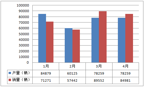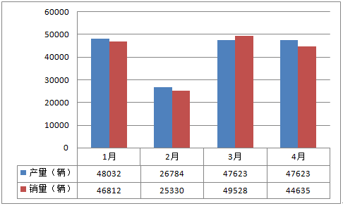 2016年1-4月中国多功能乘用车(mpv)产销图