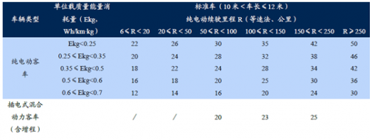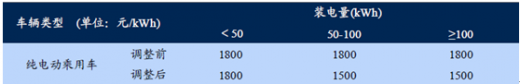 对货车和专用车的补贴提出了纯电动货车、运输类专用车单位载质量能量消耗量ekg不高于0.5,其他类纯电动专用车吨百公里电耗不超过13kwh的技术要求。补贴仍按照电池电量来计算,设定了单车20万元的补贴上限,同时调整后需根据不同的装电量分段补贴。整体来看有一定程度的退坡。