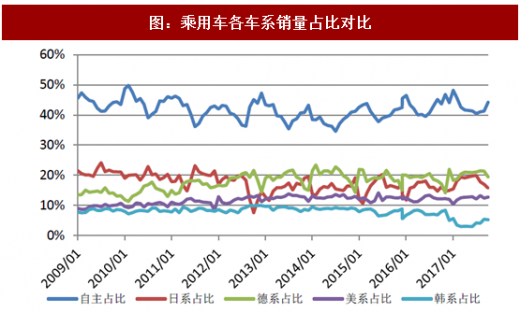 截止2017年10月的销量数据,自主品牌车型的销量占比为43%,较去年同期提升0.35个百分点,二月的最高峰时达到48%,2017年是自主品牌suv新车型密集上市的一年,同时我们也看到紧凑级suv市场竞争已进入红海,自主品牌的销售情况将出现分化。