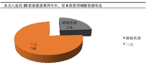 本次入选推广目录的25款新能源乘用车型中,共有6款车型使用磷酸铁铿电池。其中比亚迪纯电车型三款;一汽集团旗下两款,分别使用宁德时代和哈尔滨光宇电池;江淮汽车一款,使用国轩高科电池。随着网传补贴政策稿中,乘用车补贴门槛定为电池成组后能量密度95wh/kg以上,磷酸铁铿动力电池生产企业只有具备先进技术能力、轻量化pack实力才能达标,三元电池替代仍是主流趋势。