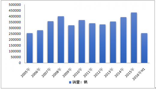 2005年波兰汽车销量255107辆,2015年波兰汽车销量432439辆,2016年h1波兰汽车销量254731辆。