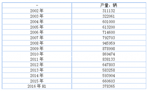 2002年波兰汽车产量311132辆,2015年波兰汽车产量660603辆,2016年h1波兰汽车产量378365辆。