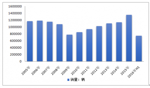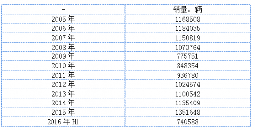 2005年墨西哥汽车销量1168508辆,2015年墨西哥汽车销量1351648辆,2016年h1墨西哥汽车销量740588辆。