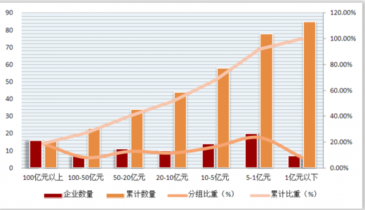 中国百货商业对2017年行业情况作了初步的统计分析。85家会员单位绝大多数是中国百货零售行业的骨干企业,年销售额规模在亿元以上的企业(集团)占91.76%,超过10亿元的占51.76%,超过100亿元的占18.82%。从销售额占比看,44家超10亿元企业(集团)的市场规模占样本整体销售额的99.19%,16家超100亿元企业的市场规模占整体规模的84.86%。这些企业的经营状况可以基本反映年度行业运行实际情况,该项统计具有行业典型代表性。