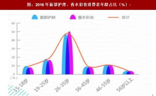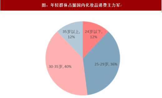 不同于发达国家成熟化妆品市场所呈现的随女性年龄增长,美容需求越强,化妆品消费水平越高的一般趋势,我国由于人均经济实力尚在成长、中老年消费者缺乏化妆品消费传统、互联网数字化营销等因素影响,社会美容意识崛起首先体现在 80、90 后年轻群体中,更加重视颜值效益,目前构成化妆品的主力。据对 2017 年我国化妆品消费人群调查情况报道显示,25-35 岁群体化妆品消费占整体比例达 76%,35 岁以上群体占 12%。