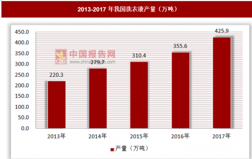 有关数据显示,2017年全球洗衣液市场规模大约在243亿美元左右,近几年一直保持稳步增长的趋势。