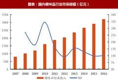 根据调味品高峰论坛上公布的中国调味品行业蓝皮书,2017年调味品行业的收入规模为 3800 亿元,未来十年,调味品行业合计达到 10000 亿的市场规模。国内会上升到5000亿,海外市场也上升到5000亿,目前,中餐风靡全球,在美国的中餐厅已达3.38万家,不断培养消费者消费中餐的习惯,大约2850 家中餐厅便可建立一家调味品工厂。复合调味酱和辣味调味品也看涨,目前,辣味调味品已经占了总体调味品30.88%。