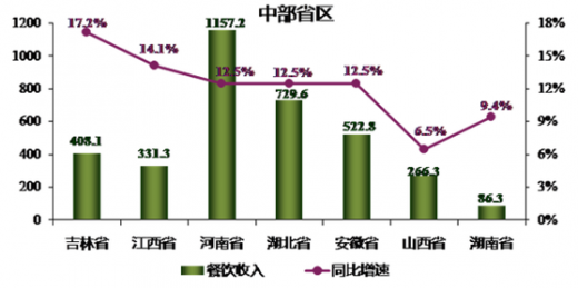 全国餐饮市场缓中趋稳,只有江西省、江苏省、浙江省、吉林省、重庆市等地发展增速仍保持较高的幅度不断提升,而大部分地区则从上年迅速回暖态势逐渐降温转向稳定发展。