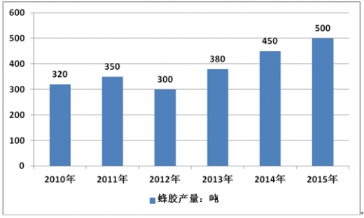 2015年我国生产与市场基本情况与上年相差不大。2015年,我国蜂胶毛胶的总产量约500吨,与上年基本持平,供不应求。由于蜂胶产量供不应求,给了不法分子可乘之机,致使伪劣、假冒蜂胶充斥蜂胶市场,造成蜂胶原料产品质量参差不齐。