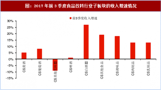 动态看,2017年前3季度白酒板块的收入和利润增长速度也名列前茅。根据wind的数据,2017年前3季度白酒行业收入同比增长27%,高于食品饮料行业整体16%的增速;2017年前3季度白酒行业净利同比增长42%,高于食品饮料行业整体30%的增速。白酒板块是拉动整个食品饮料行业收入和净利增长的主要力量。