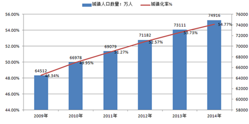 自1978年实施改革开放的三十多年来,中国宏观经济长期保持10%以上的年均增速。gdp总量先后超越意、英、法、德、日,目前已成长为世界第二大经济体。金融危机以来,特别是2013年后,中国经济正在进入新常态 :经济增长由之前的政府投资和出口驱动向国内消费驱动过渡,增速由高速区进入中高速区。中国经济增速虽然放缓,但是并不意味着经济收缩,其gdp总量和增长速度仍然高于世界绝大多数国家。从中长期来看,中国持续进行的城市化、中产阶级的崛起、逐步成为消费主力的千禧一代 、居民收入的预期增长,仍将持续推动食品消费的增长: