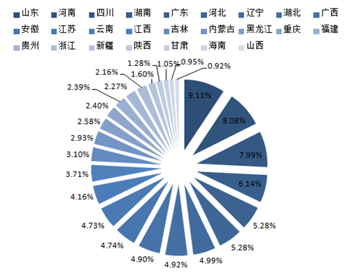 中国是玉米生产大国,总产量全球仅次于美国,位居第二,占全球总产量25%左右,产量超过2 亿吨。中国玉米生产区域虽然分布比较广泛,但辽宁、吉林、黑龙江及内蒙主产区生产了全国40%以上的玉米,上述地区常年玉米播种面积为1000-1400 万公顷,正常年份玉米产量6000-9000 万吨左右,是中国最大的玉米商品粮产地。其次,华北黄淮地区常年玉米播种面积为1000-1100 万公顷,正常年份玉米产量为6000 万吨左右,约占全国总产量30%。